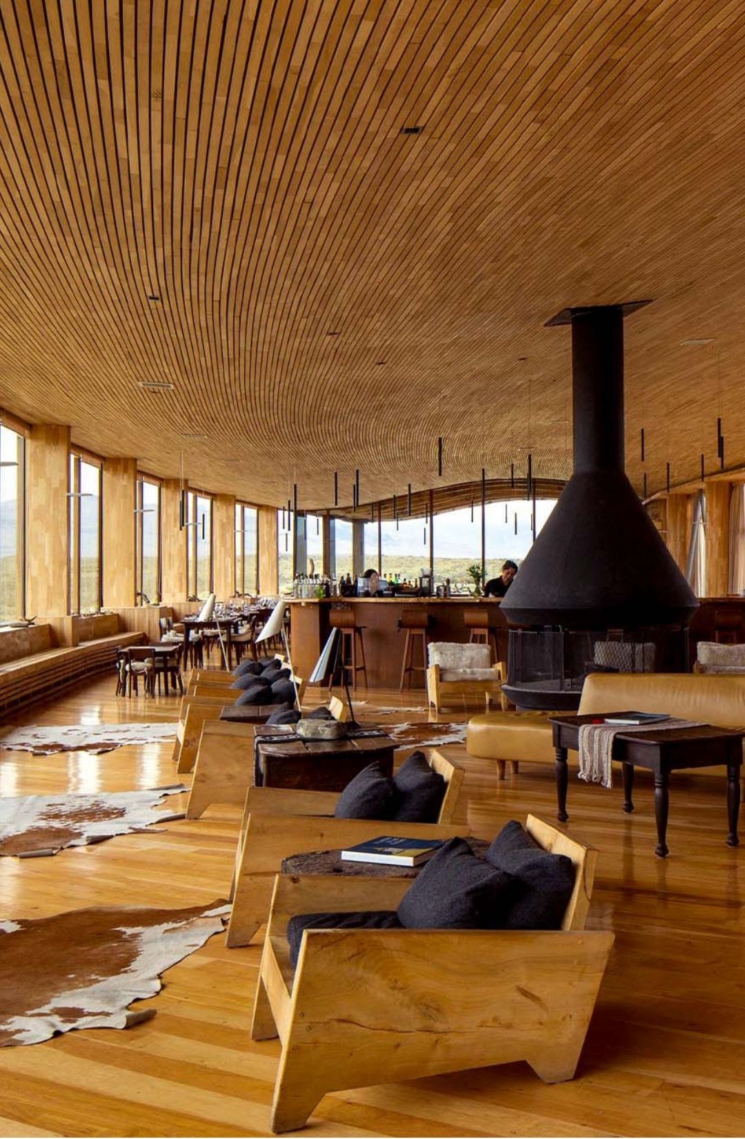 Positioned on the edge of Torres del Paine National Park, Tierra Patagonia is designed to dissolve boundaries between interior and landscape. Curving wooden forms and panoramic windows frame uninterrupted views of Lake Sarmiento and the Paine Massif.